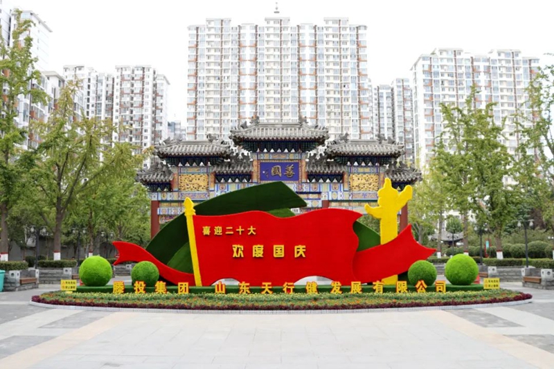 9月24日,滕投集團(tuán)天行健發(fā)展公司在九州清晏老縣衙廣場(chǎng)布置的一座大型花壇綠雕吸引眾多市民駐足觀看,為廣場(chǎng)又增添了一道靚麗的獨(dú)特風(fēng)景線。該花壇以“喜迎二十大 歡度國(guó)慶節(jié)”為主題,高5米、長(zhǎng)16米,由一萬(wàn)余株花卉綠植簇?fù)矶桑瑢哟畏置鳎e(cuò)落有致。既有寓意“萬(wàn)眾一心、欣欣向榮”的國(guó)慶菊,又有體現(xiàn)“永遠(yuǎn)跟黨走、共建