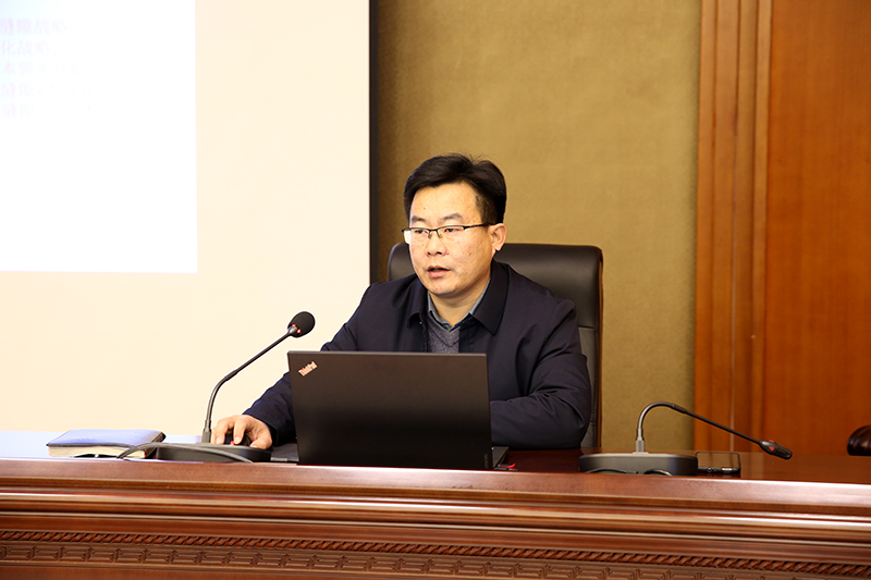 1月15日,集團黨總支理論學習中心組2021年度第一次集中學習研討會議在公司八樓會議室召開。黨總支理論學習中心組全體成員參加會議,集團公司書記、董事長宗成偉主持會議并講話。會上,集團總經理侯欽軍領學《習近平總書記在省部級主要領導干部學習貫徹黨的十九屆五中全會精神專題研討班開班式上的講話精神》;副總經理史孝強