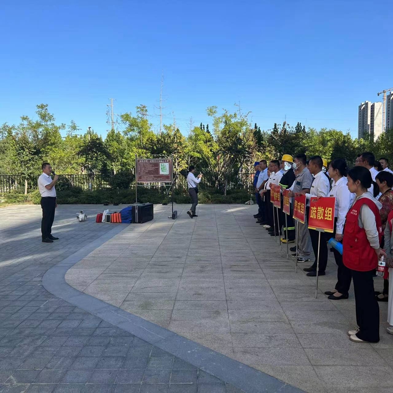 中秋國慶雙節將至,為進一步提升節日期間消防應急救援能力,確保滕投集團各下轄小區度過一個安全穩定、歡樂祥和的佳節。9月21日下午,集團萬德物業公司聯合滕投悅府物業服務中心開展第三季度物業消防綜合演練活動。活動邀請了北辛街道文化路社區領導、滕州藍天救援隊救援人員、集團下轄14個物管項目經理和安全專員共計80余人參加活動。