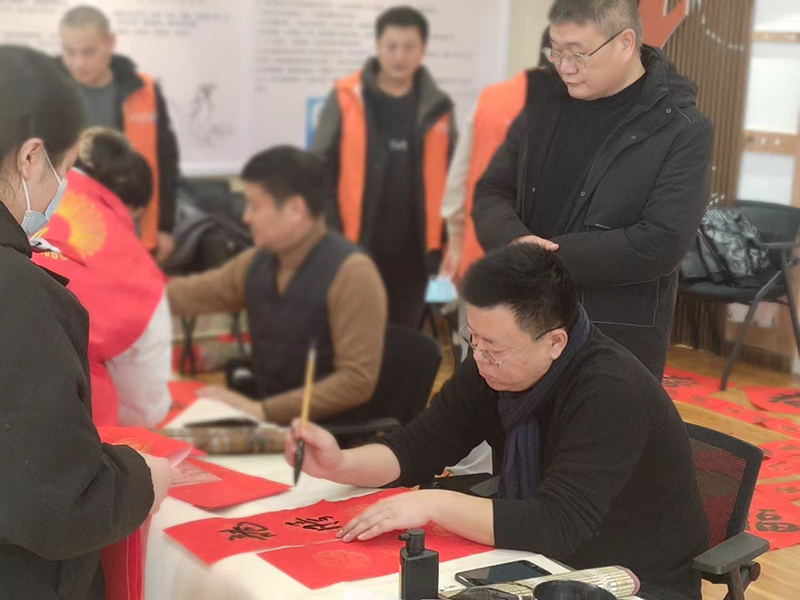 為更好地豐富小區(qū)居民文化生活,迎接歡樂、祥和的新春佳節(jié),2月1日,滕投人和天地小區(qū)開展“翰墨飄香迎新春 紙墨書香送祝福”寫春聯(lián)送福字活動。 活動現(xiàn)場志愿者們提前就把春聯(lián)紙、筆墨紙硯等準備齊全,為大家做好書寫服務(wù)。書法協(xié)會書法家們一早來到小區(qū),挽袖執(zhí)筆,揮毫潑墨。紅紙為底,黑墨為字