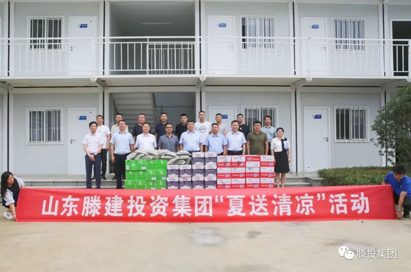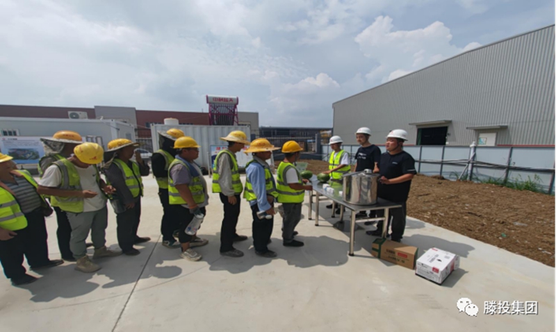 連日來,高溫炙烤著大地,但滾滾熱浪下仍有眾多建筑工作者堅守一線。在中材鋰膜三期項目施工現(xiàn)場,建設(shè)者們?yōu)樽汾s進度,不畏烈日驕陽,堅守崗位。為保障一線工人的安全和健康,滕投集團興唐公司領(lǐng)導(dǎo)班子成員和工會相關(guān)人員組成夏日送清涼慰問小組,于7月19號到達中材鋰膜三期項目現(xiàn)場,開展“情系工友,夏日送清涼”活動。慰