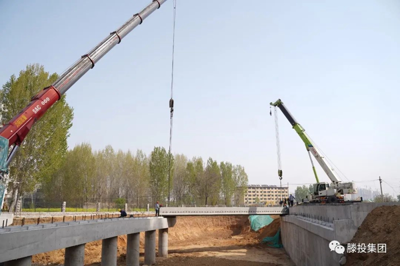 4月9日,在新華橋建設(shè)現(xiàn)場,幾十名施工人員正配合大型機(jī)械進(jìn)行預(yù)應(yīng)力空心橋板吊裝施工,這標(biāo)志著新華西路橋梁工程由下部基礎(chǔ)結(jié)構(gòu)施工全面轉(zhuǎn)入橋面施工。據(jù)了解,新華橋?yàn)樾氯A西路跨馮河橋梁項(xiàng)目,該橋長60米,寬35米,橋梁總面積約2100平方米,工程總投資約1700萬元,橋梁上部結(jié)構(gòu)采用裝配式預(yù)應(yīng)力混凝土簡支空心板,下部結(jié)構(gòu)