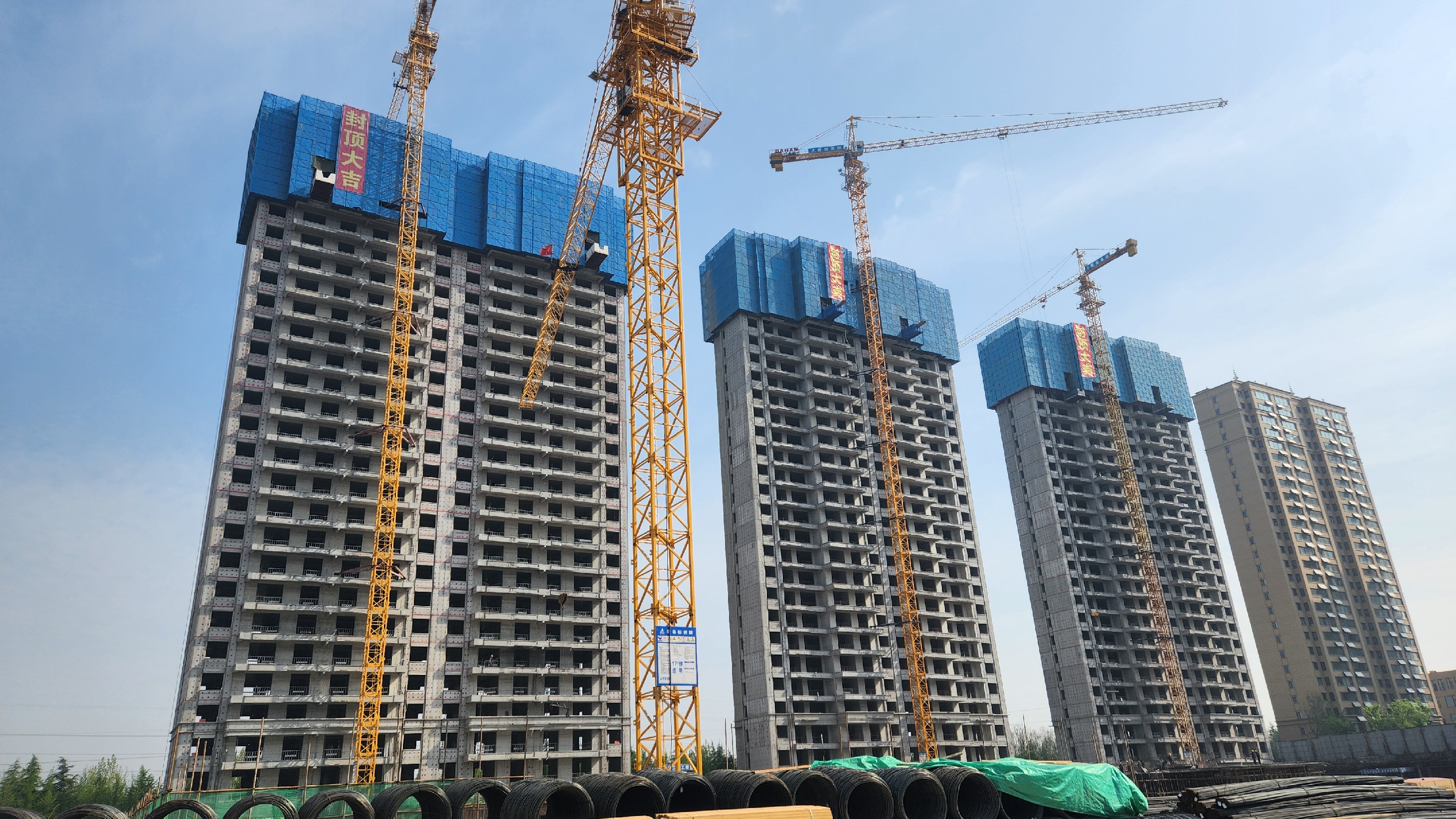 槐序時節(jié),風(fēng)華正濃。滕投悅府二期項(xiàng)目迎來了項(xiàng)目的首個重要階段性成果,15.16.19.14號樓依次完成了主體封頂施工。自2023年夏季項(xiàng)目整體進(jìn)入土建施工階段以來,工程管理三部攜同總包單位、監(jiān)理單位、跟蹤審計(jì)等悅府二期全體參見單位在集團(tuán)公司的統(tǒng)籌規(guī)劃下,在其他兄弟部門的幫助配合下克服了整體市場環(huán)境及房地產(chǎn)政策調(diào)整帶